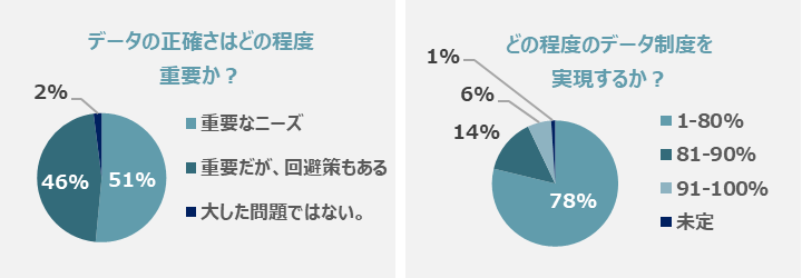 - 回答者の半数以上がAIの成功にはデータの正確性が不可欠と回答したにもかかわらず、データの正確性を達成したと回答したのはわずか6%