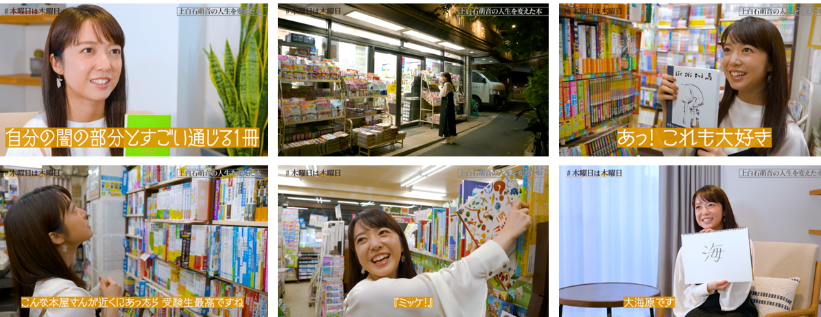 プロジェクト第一弾では、俳優・歌手の上白石萌音さんにご協力いただき、上白石さんが本屋を訪れるスペシャルムービーを作成いたしました。本ムービーは特設サイトおよび東京書店商業組合公式YouTubeチャンネル「東京の本屋さん~街に本屋があるということ~」にて本日10月6日(木)より公開いたします。また、上白石さんには「#木曜日は本曜日」プロジェクトに参加する書店の店内にて流れる店内放送もご担当いただきます。毎週木曜日、上白石さんの声で「#木曜日は本曜日」プロジェクトについてお知らせいたしますので、ぜひ本屋へ足をお運びください。