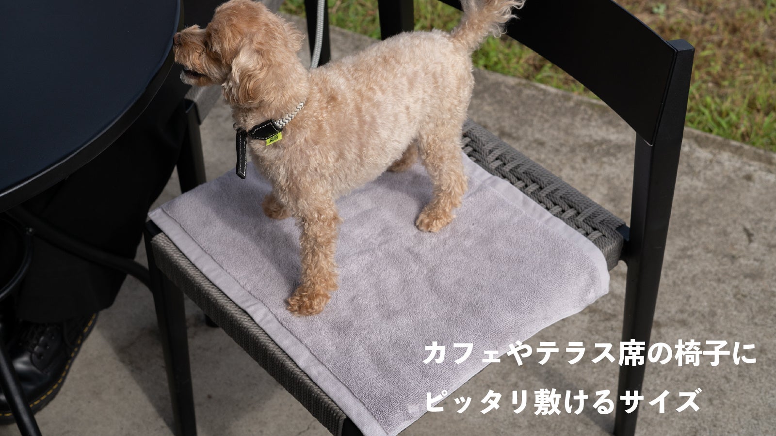 そんな声からオーナー様と一緒にお洒落を楽しめる、シンプルなデザインのカフェマットを作りました。ワンちゃんの心地よさ、オーナー様にとっての使いやすさと、より長く使っていただけるよう品質にもこだわり抜いて製作しました。ワンちゃんとのお出かけにお使いいただき、ワンちゃんとの思い出づくりの一助になれれば幸いです。