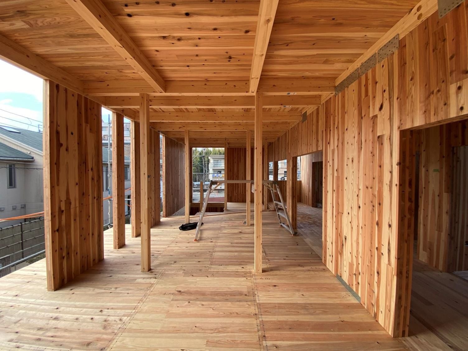 多くの前を向いて挑戦しようとする方々との出逢いと交流の中で、新たにCLTパネル工法を知り、その機能性、合理性と共に海外での事例などに触れ、現在日本国内で主流であった部分的なCLT活用ではなく、もっと本格的に導入できないかをメーカである銘建工業様と協議打ち合わせを重ねてきました。