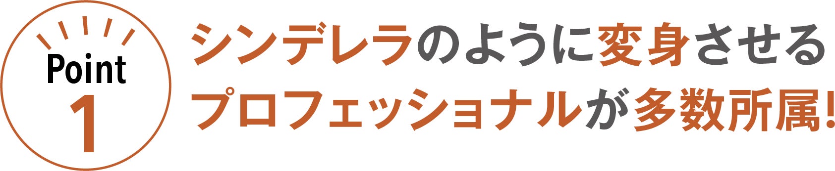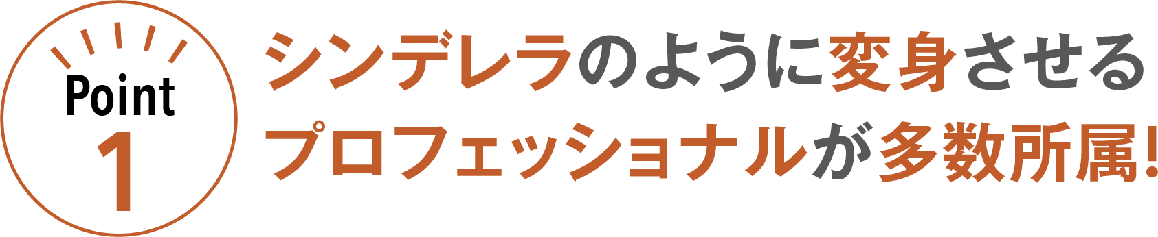 - 【Point 1】シンデレラのように変身させるプロフェッショナルが多数所属!