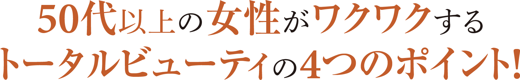 サービスを受けたお客様は、トータルビューティのサービスを一様にワクワクして、楽しんで帰られます。このサービスには、50代以上の女性の心を躍らせる4つのポイントがあります。