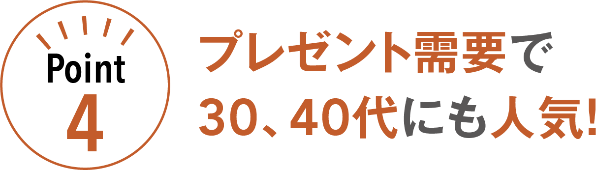 - 【Point 4】プレゼント需要で30、40代にも人気!