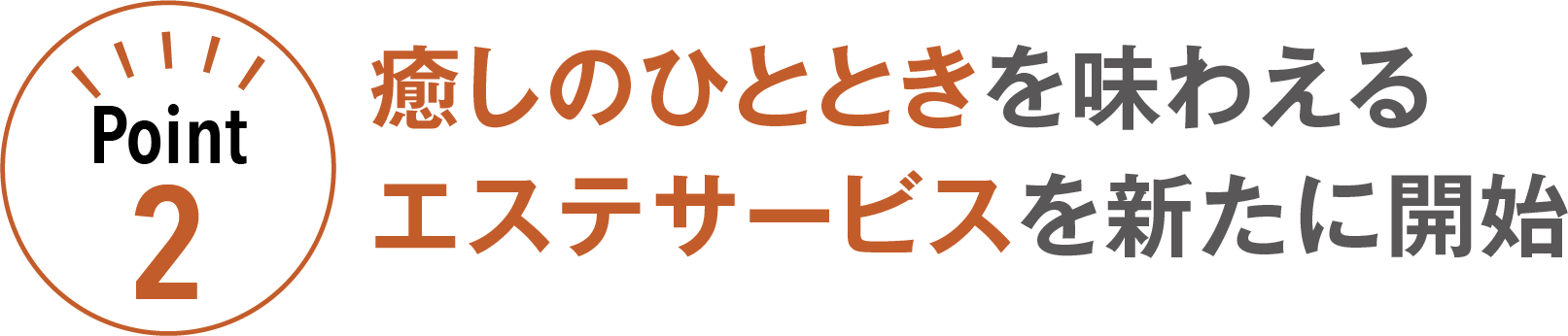 - 【Point 2】癒しのひとときを味わえるエステサービスを新たに開始