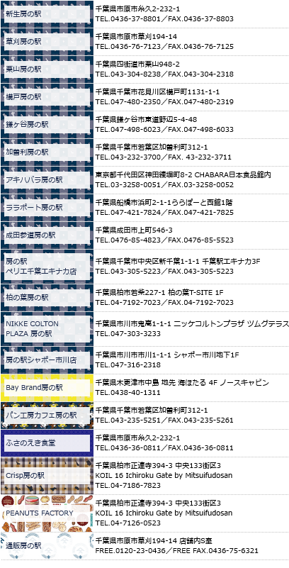 ・房の駅ペリエ千葉エキナカhttps://fusanoeki.fusa.co.jp/nikke/店