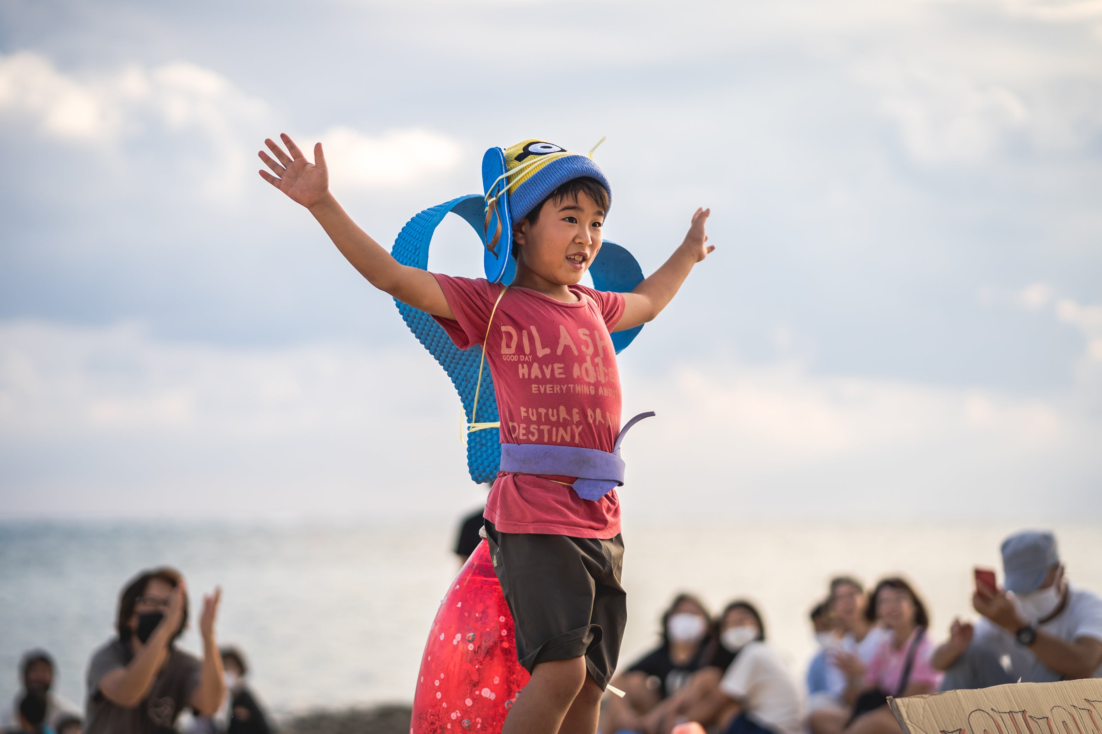 初年度は、海洋ゴミで仮装してのビーチクリーン。2年目は海洋ゴミで仮装してのビーチでのファッションショーを行いました。