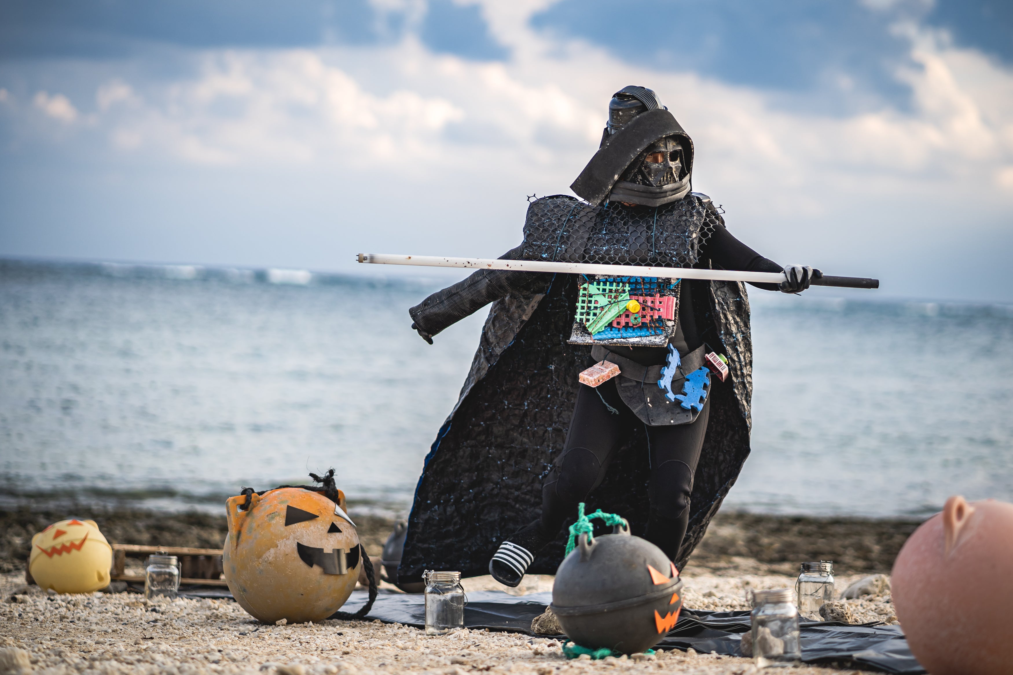 ハロウィンイベントの翌日、毎年のように問題視されるのがゴミの放置問題です。石垣ハロウィンは、そんなゴミ問題に着目して2020年よりスタート。石垣島の海岸には、大量の海洋ゴミが流れ着いています。その海洋ゴミを拾い、装飾し、お化けになることで、ゴミを減らすハロウィンイベントとしてスタートしました。