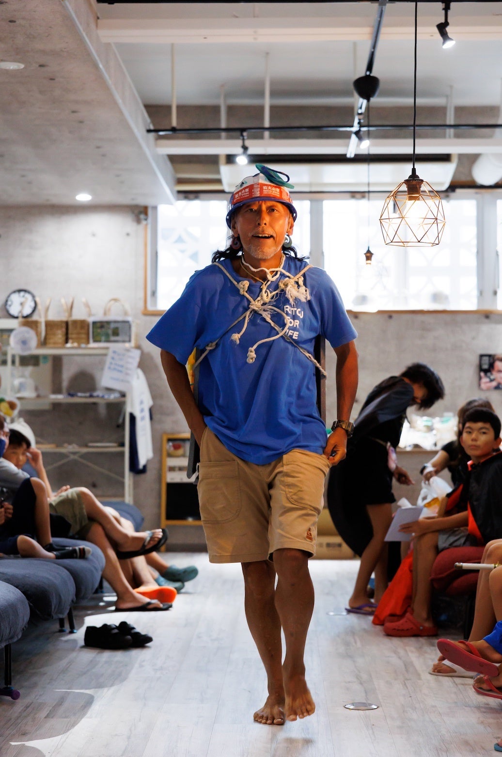 ファッションショーは《しまのとき》の店内にランウェイを設営し、20組32名の参加者が、工夫を凝らした衣装で観客を沸かせました。