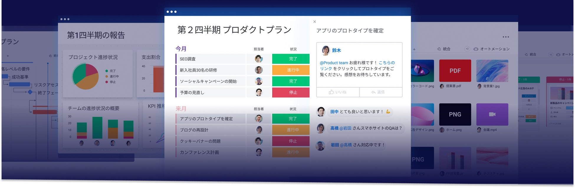monday.com Work OS は、高機能のソフトウェアをすべての人に共有するオープンプラットフォームです。これにより、あらゆるニーズに対応した業務管理ツールやソフトウェアアプリケーションを容易に構築することができます。また、このプラットフォームを利用することで、人とプロセスやシステムを直感的に結びつけ、チームが仕事のあらゆる面で優れた能力を発揮できるようになると同時に、ビジネスにおける透明性の高い環境を作り出すことができます。monday.com は、テルアビブ、ニューヨーク、サンフランシスコ、マイアミ、シカゴ、ロンドン、キエフ、ワルシャワ、シドニー、サンパウロ、シンガポール、東京に拠点を置いています。プラットフォームはあらゆる業種に対応できるよう完全にカスタマイズ可能で、現在200以上の国と地域の200以上の業種において15万2千社以上のお客様に利用されています。