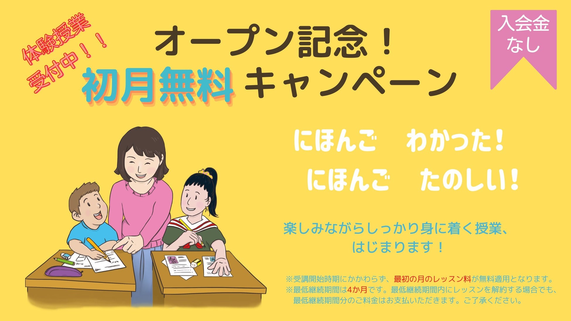 4ヶ月以上継続される方は、初月のレッスン料4回分がすべて無料!