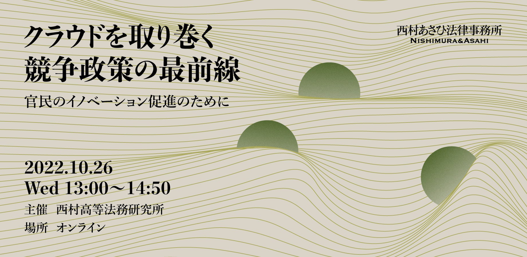 西村あさひ法律事務所により設立された研究機関である西村高等法務研究所は、「クラウドを取り巻く競争政策の最前線〜官民のイノベーション促進のために〜」を、2022年10月26日(水)に開催致します。
