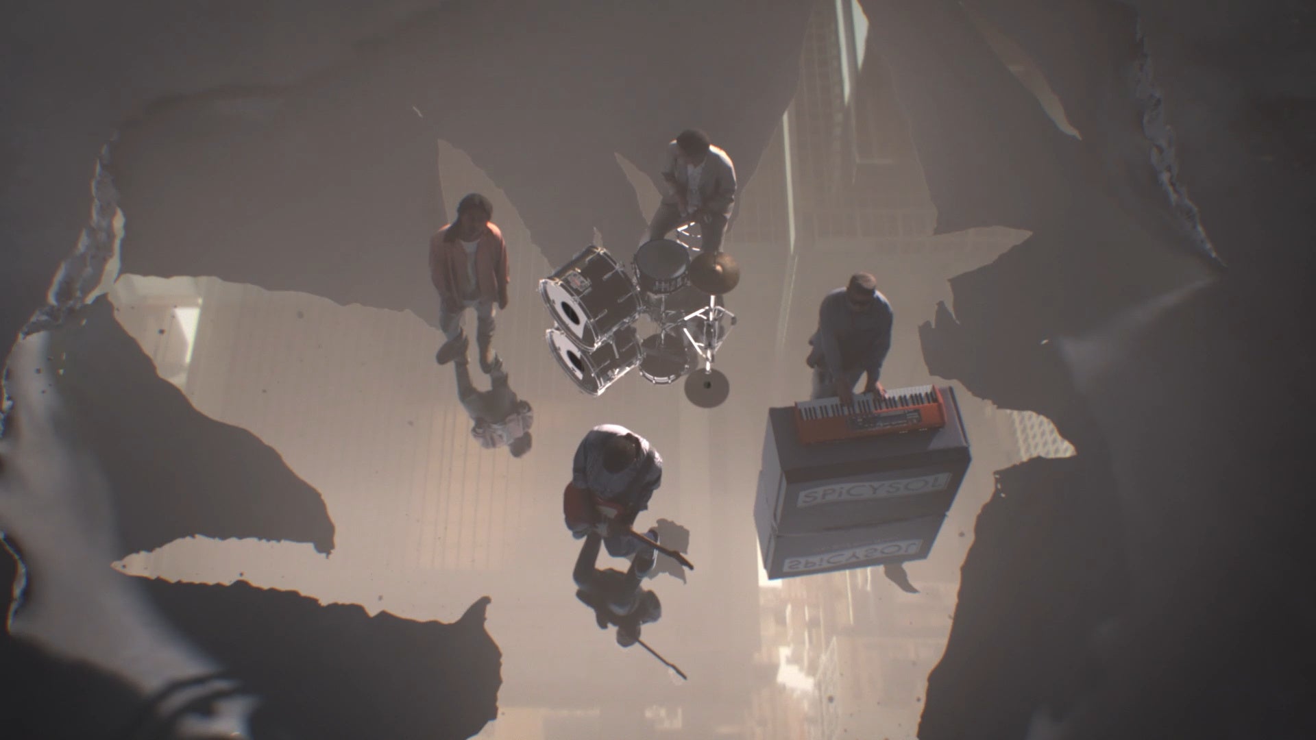 通常の制作では、撮影前にアングルや構図、ライティングを綿密に計算して撮影に臨みますが、この企画ではディレクターは撮影現場に立ち会わずに、4人組バンド「SPiCYSOL」の4人それぞれのパフォーマンスをニコンクリエイツ側で撮影し、高品質な3D/360度データ映像を生成。その素材を、個性の異なる3人のディレクターに提供し、後から背景や構図などの編集を加えてもらうことで、同じ素材でも様々な映像が生まれました。