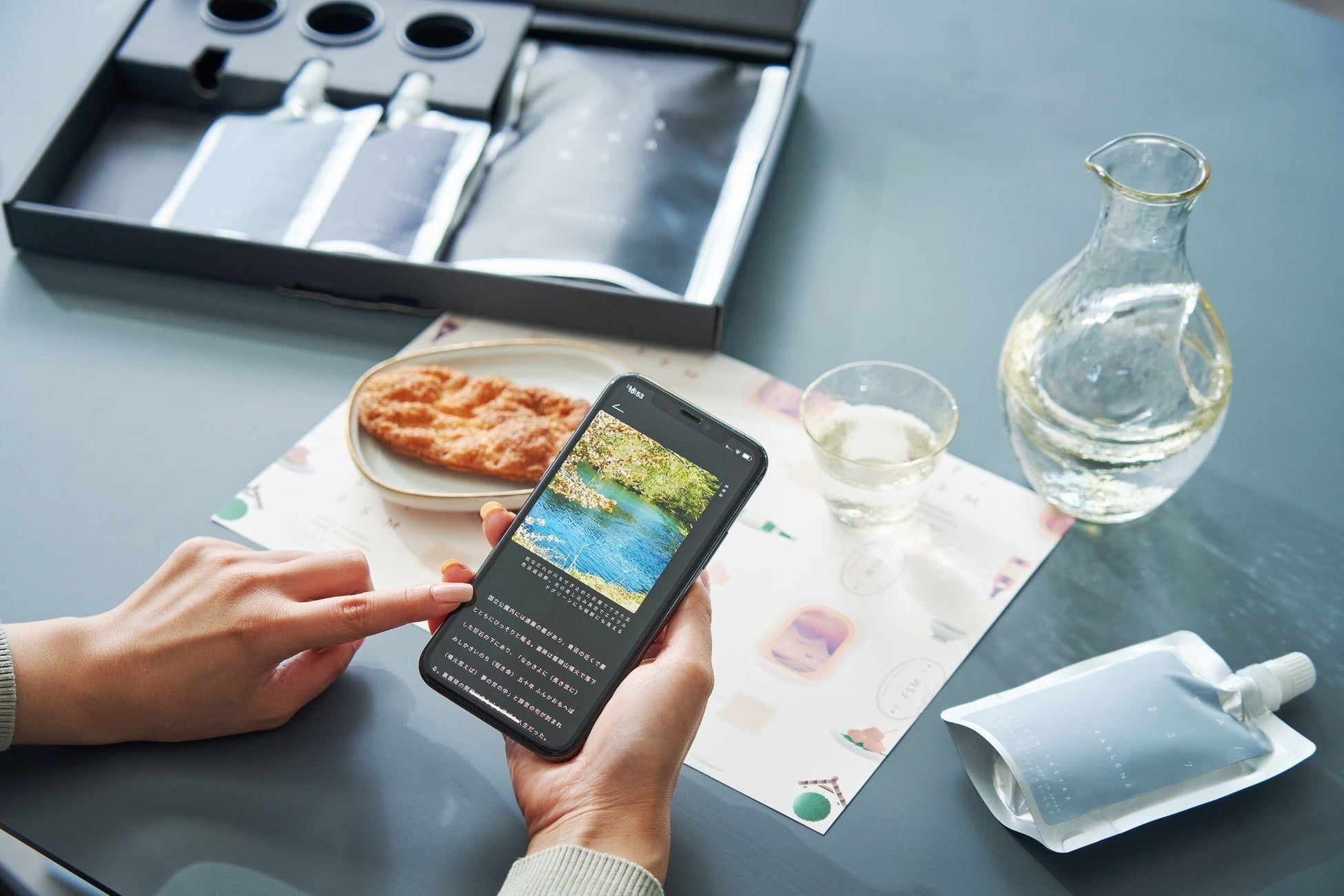 好みの日本酒を診断する「サケタイプ診断」と、セレクトされた日本酒とおつまみのペアリングの定期便を併わせたサービスで、酒やおつまみの地域的な背景を丁寧に解説するなど、日本酒ビギナーに向けて体験が丁寧にデザインされている。