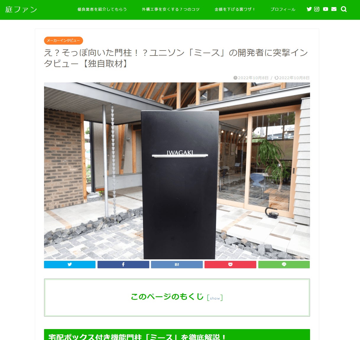 今回は、新商品の紹介記事・インタビューをさせていただきます。今後は、既存商品の掘り起こしも、実施していきたいです。庭ファン宛には、一般のユーザー様からの多数の質問が寄せられます。「その課題解決には、〇〇というメーカーの△△商品がぴったりです」「そのお悩みは、◯◯社の△△をこういう使い方をすれば解決できるよ」と、ご提案できる内容がまだまだあります。一般ユーザー様からのお声をもとに、新商品の開発のマーケティング資料として活用したり、一般ユーザー様はお庭のお悩みが少しづつ解決して、より良いお庭づくりの一助になれれば幸いです。今後も、一般ユーザー様とエクステリアメーカー様・資材メーカー様との架け橋になれるよう、これからも様々な取組みを続けてまいります。