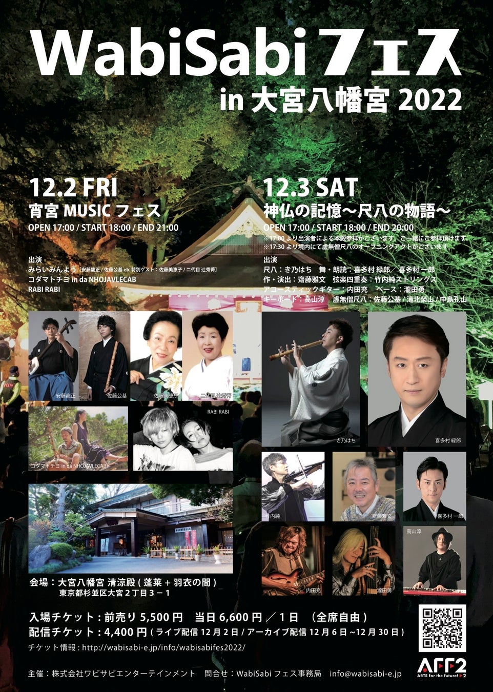 尺八の生演奏と朗読・舞による新しい演劇「WabiSabiフェス2022 in 大宮八幡宮」にて12月3日に開催