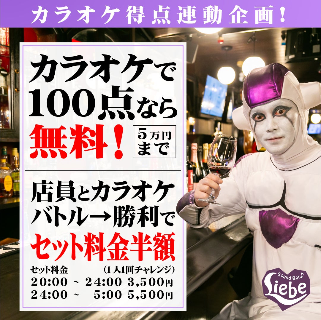 Sound Bar Liebeではリニューアルを記念し、カラオケ得点連動企画を実施しています。