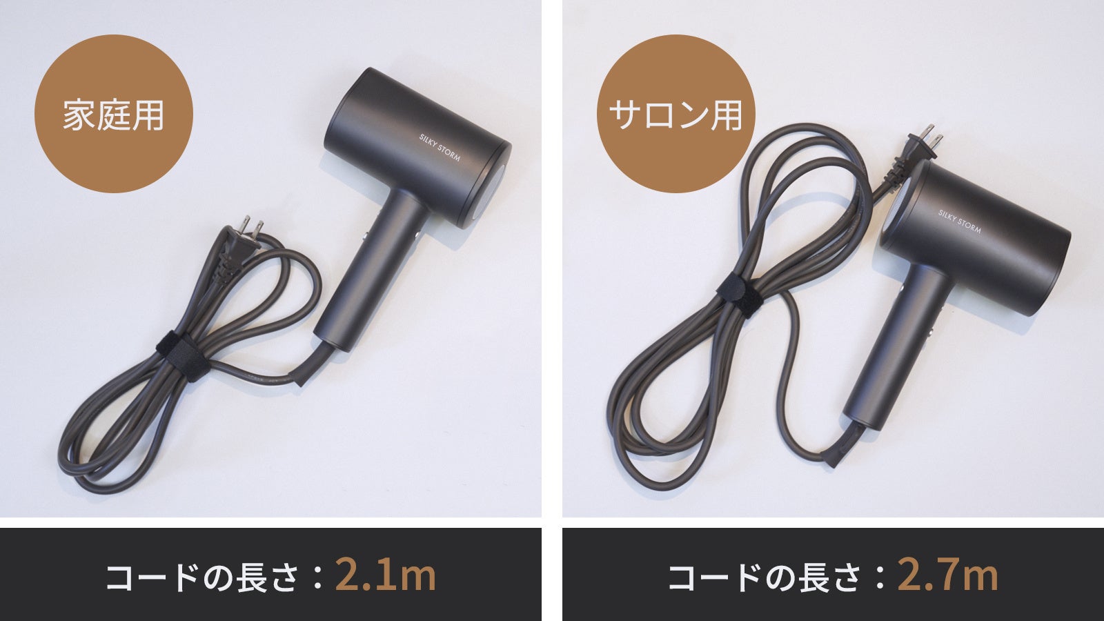 家庭用(約2.1m)とサロン用(約2.7m)の2種類のコードをご用意!用途の合わせてお選び行けます。