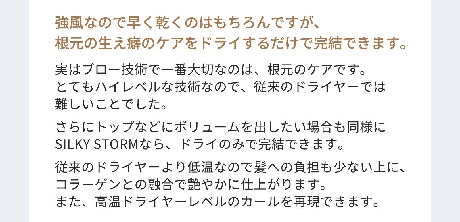 「SILKY STORM」は、サロンワークの他、ファッション誌を中心にヘア&メイクアーティストとして活躍されている「シバタロウ」プロデュースの新感覚ヘアドライヤーです。