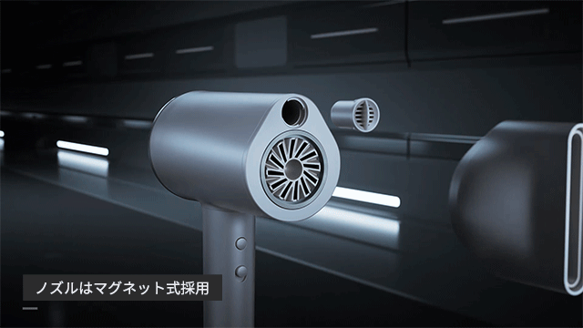 スタイリングノズル・エアシャワーヘッド・吸込口ノズルはマグネット式を採用しています。360度回転できるので、お好みに合わせて簡単に風向きを変えることもできます。