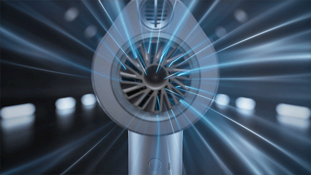 100,000rpmの高速ブラシレスデジタルモーターを搭載。さらにエアマルチプレイヤーテクノロジー採用(13個のアルミニウム金属の風車が急速に回転)で、空気を中央に絞って送ることで、さらに気流を2倍にしています。