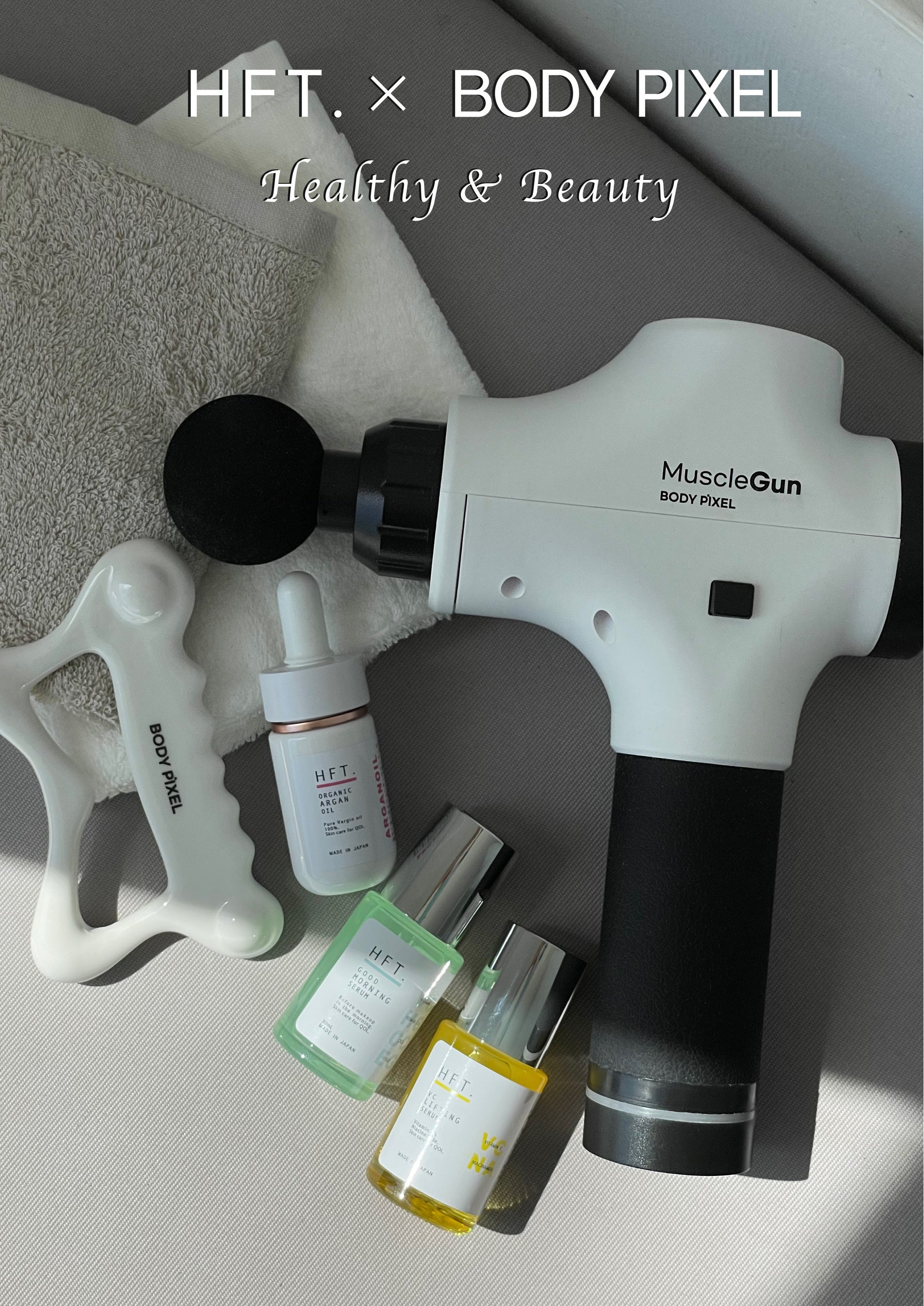 この秋新発売の「HFT. GOOD MORNING SERUM(グッドモーニングセラム)」をお試しいただける他、期間中HFT.美容液をお買い上げの方には、ハイフエステサロン(Hifu hifu)でも好評販売中のシートマスク(¥1,100)をプレゼント。BODYPIXELかっさをお買い上げの方にはオーガニックアルガンオイル(¥2,200)をプレゼントを実施。※なくなり次第終了