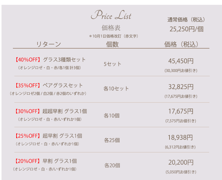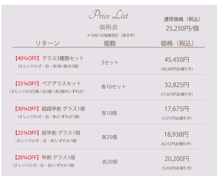 (セット販売、ペア販売、個別販売 数量限定最大40%割引あり)