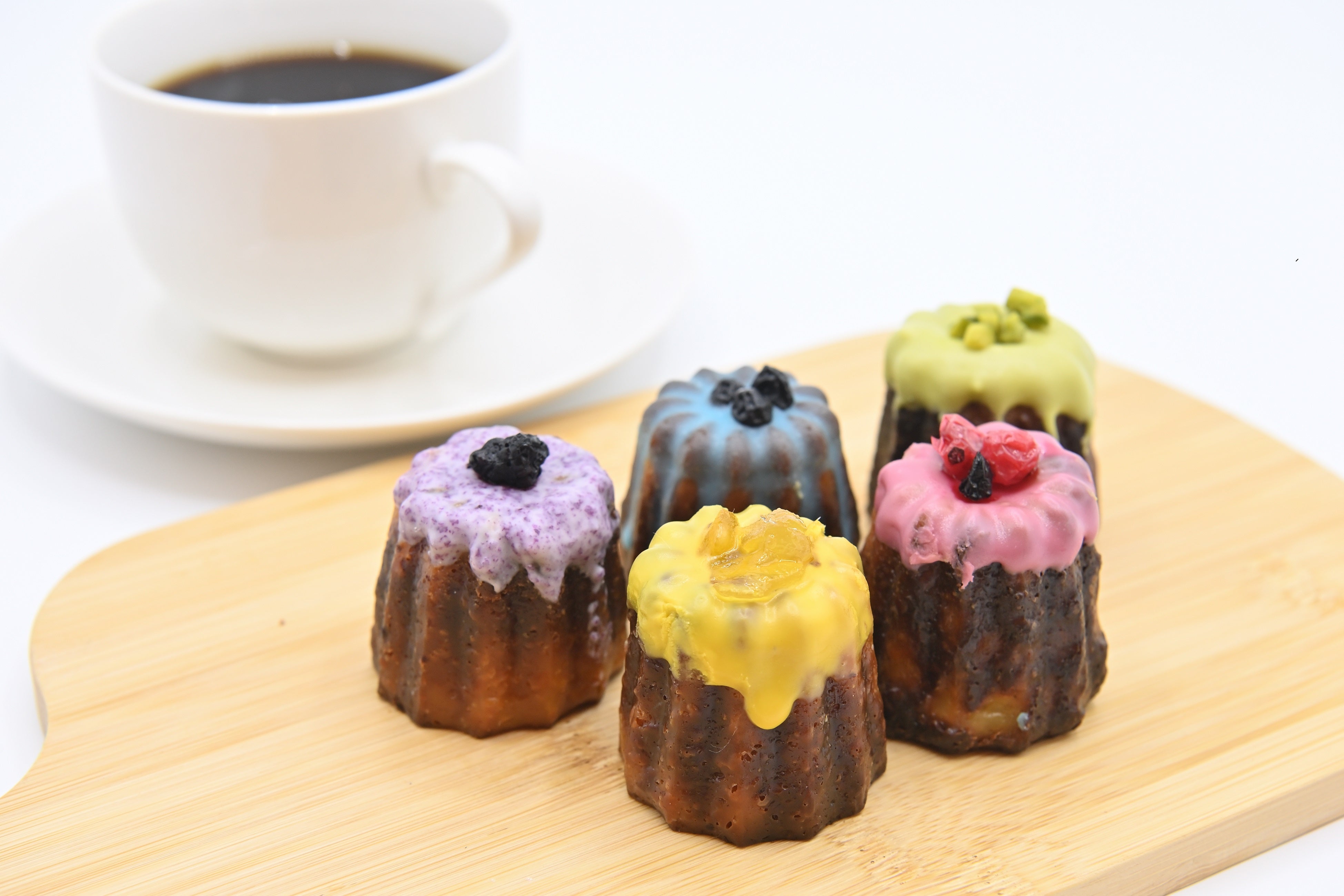 ・『TAKARAZUKAカヌレ』275~330円。カヌレ5色セットは1595円