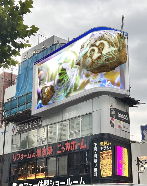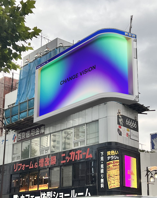最初の放映は、CHANGE ViSiONのスタイルを通し、クリエイティビティを示す、屋外広告業界では日本で初めての3Dデジタルアートを放映します。(2022年10月自社調べによる)