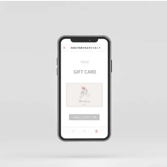RIÉNEのオンラインストアではeギフトカードも提供しております。大切なご家族やご友人へパーソナル体験という記憶に残るプレゼントをお贈りできます。