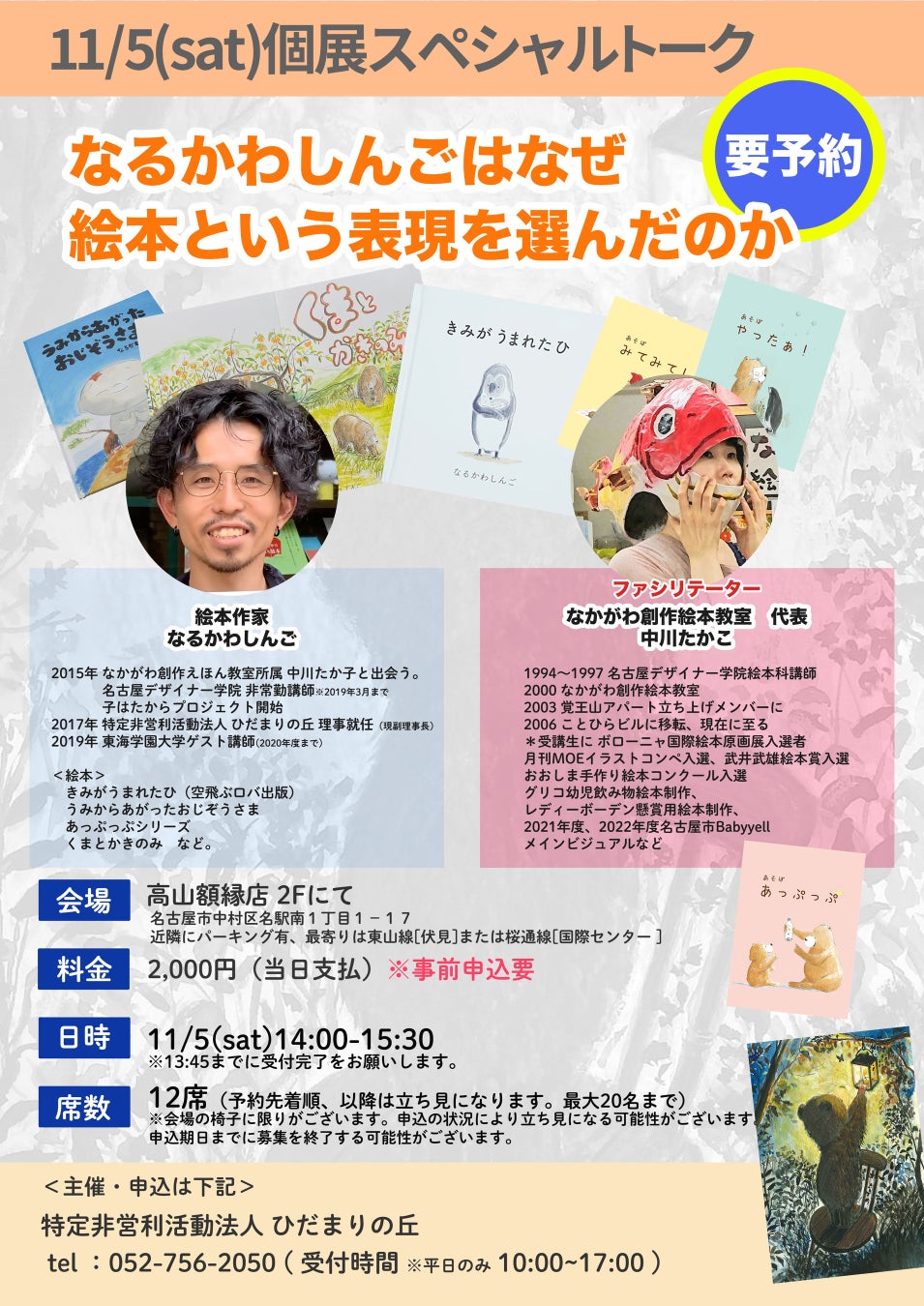 そんな中川たか子氏が、7年間の関わりにおいて、なるかわしんごの世界観や絵本の作り方などを織り交ぜながらトークいただきます。