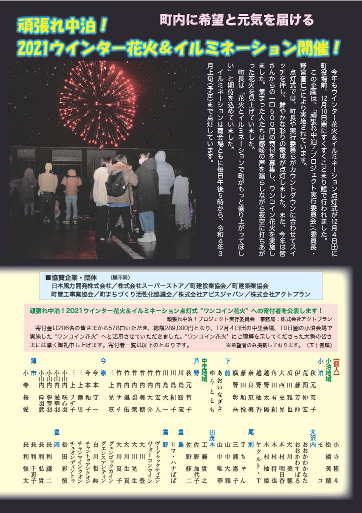 2021年12月中泊町役場前にてウィンター花火&イルミネーション点灯式が行われました。
