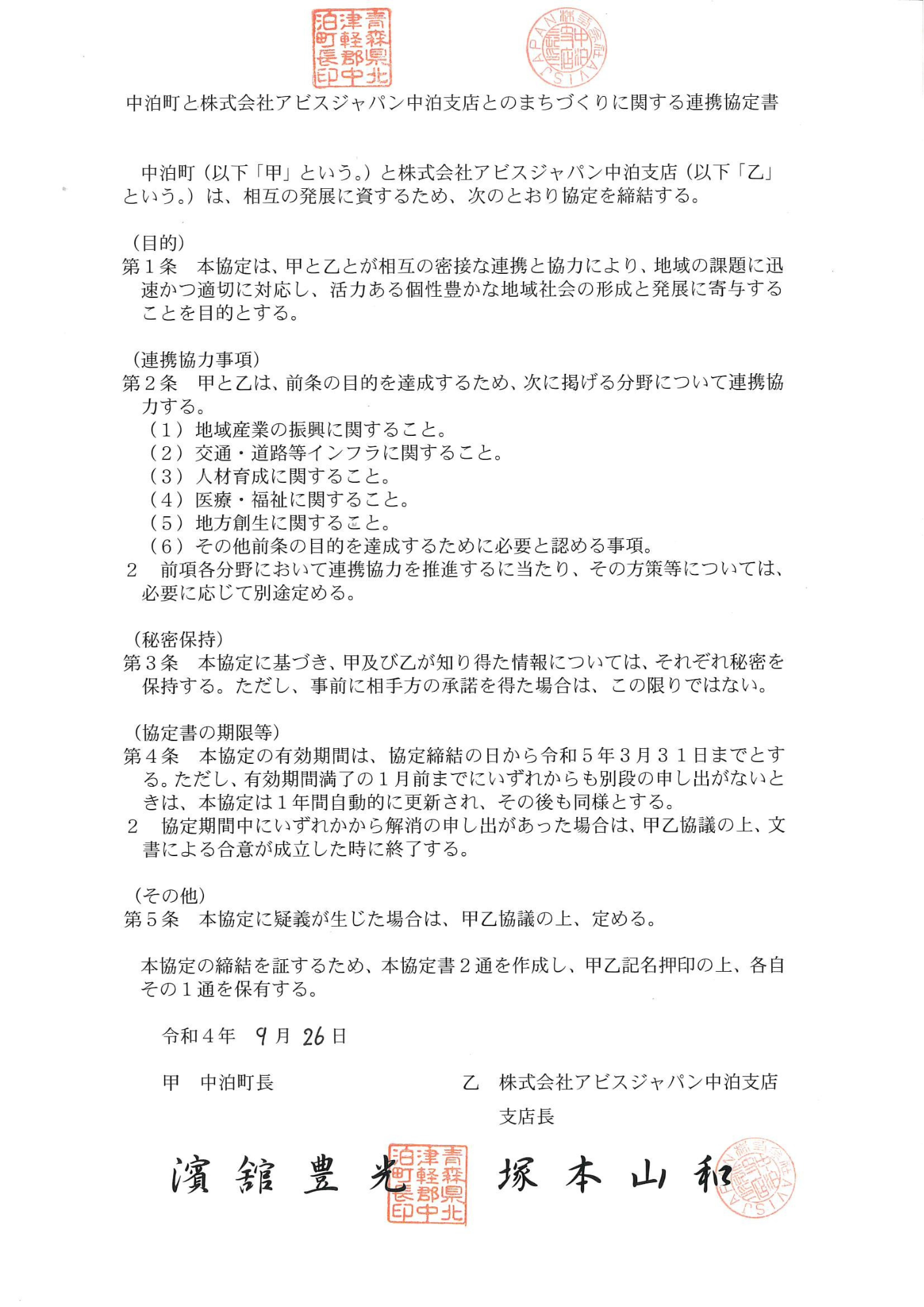 株式会社アビスジャパン、「中泊町とまちづくりに関する連携協定」を締結しました。