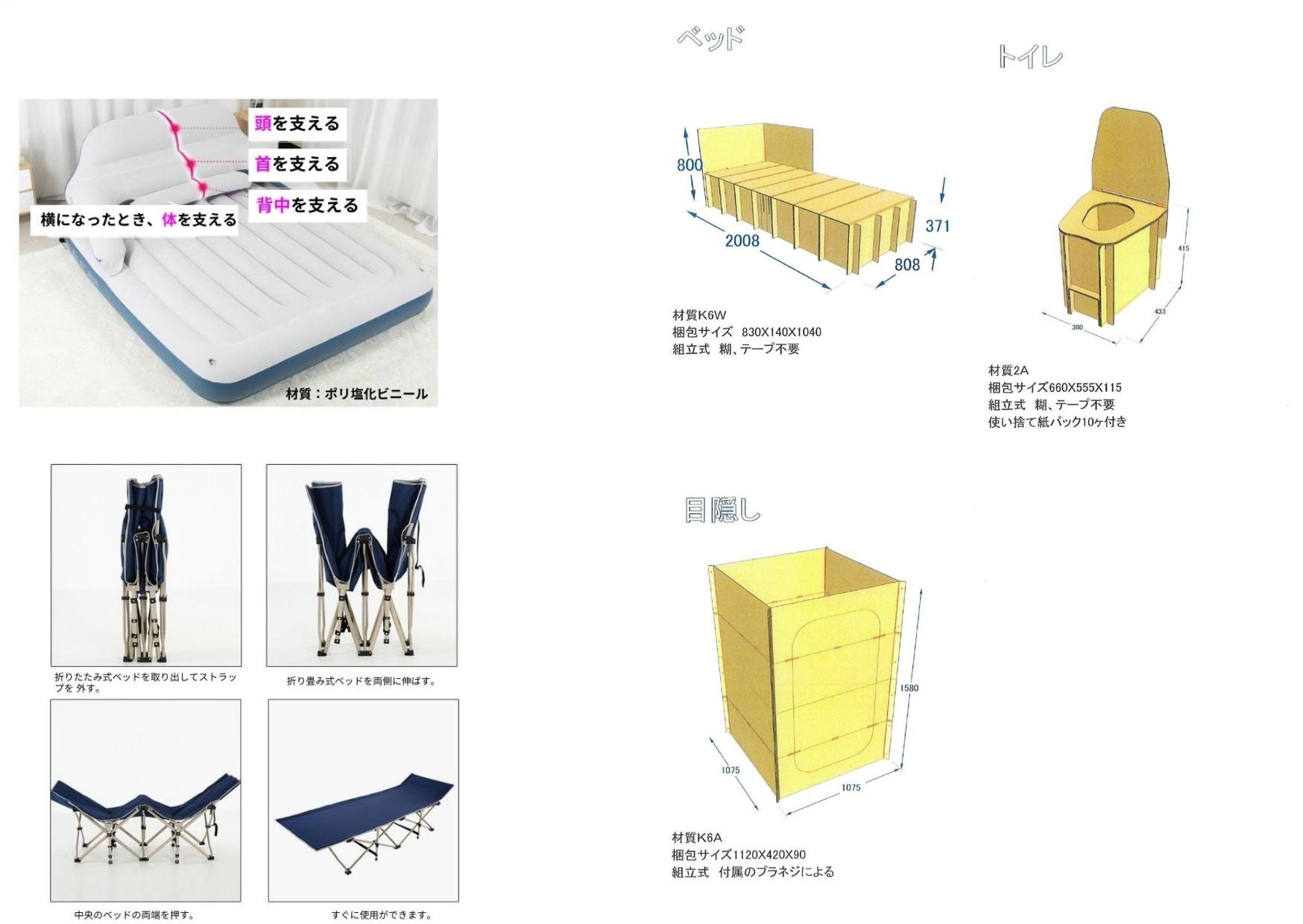 またAI検温器、非常用品である「エアベッド・パイプベッド」、ダンボールで作られた「ベッド・トイレ・目隠し」などの導入にも尽力して参りました。