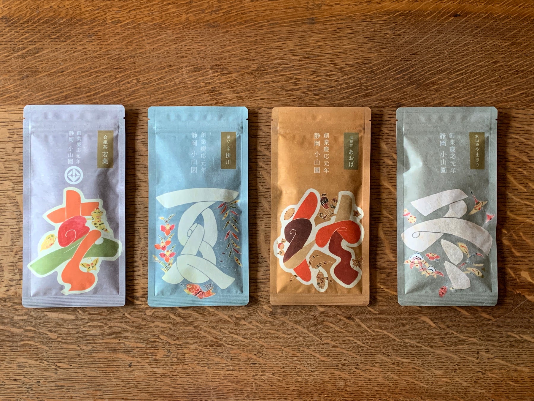 移り行く季節を大胆かつ繊細に表した「春・夏・秋・冬」。この作品に共鳴し、茶師の仕上げと合組(ブレンド)により日本の四季をお茶で表現しました。同じ静岡の地で生まれ、時代を経ても自由で斬新な作品を作り続けた芹沢銈介氏。小山園のお茶も芹沢作品のように時代を超えるものでありたいと願いこの作品を用いています。