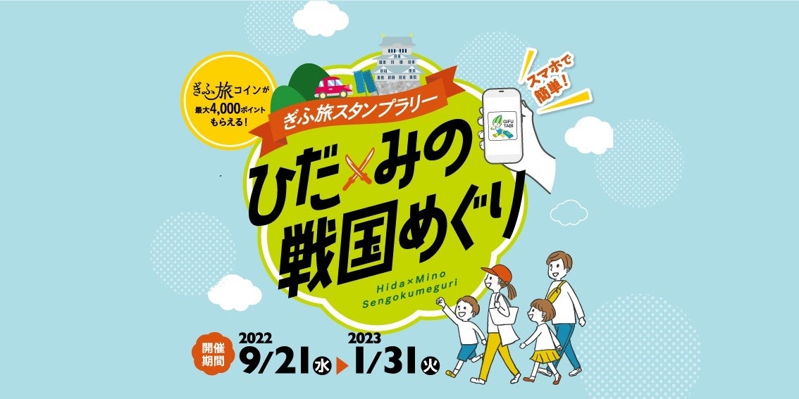 ■内容:県内の戦国・武将関連施設や観光施設(岐阜城や岐阜関ケ原古戦場記念館など合計37スポット)をめぐる全6コースをめぐるデジタルスタンプラリー。1コース達成するごとにぎふ旅コイン500ポイントがその場で獲得でき、6コース全て達成すると、さらに1,000ポイントが獲得できます。