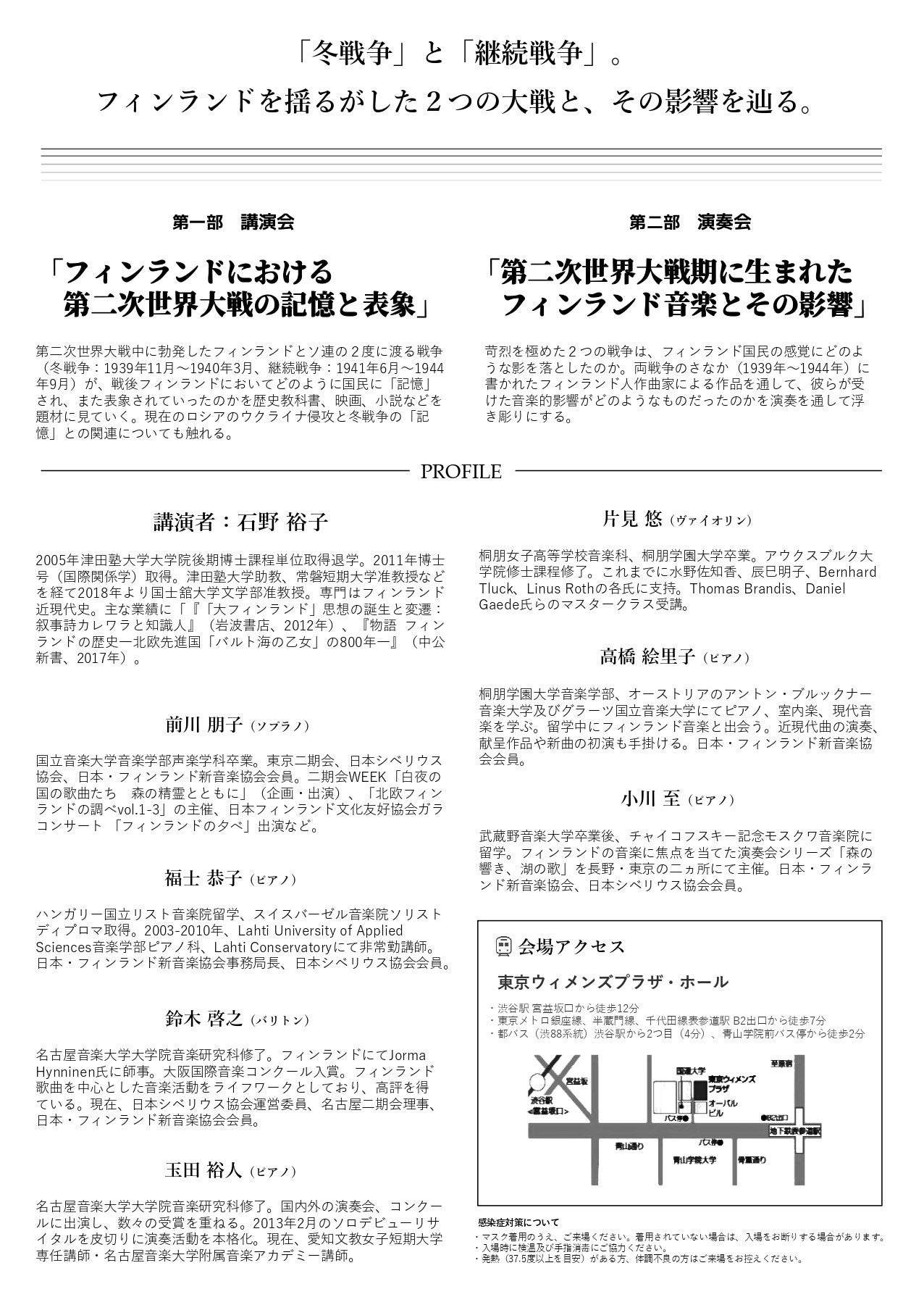 講演と演奏会のお知らせ「フィンランドにおける第二次世界大戦の記憶と表象」「第2次世界大戦期に生まれたフィンランド音楽とその影響」