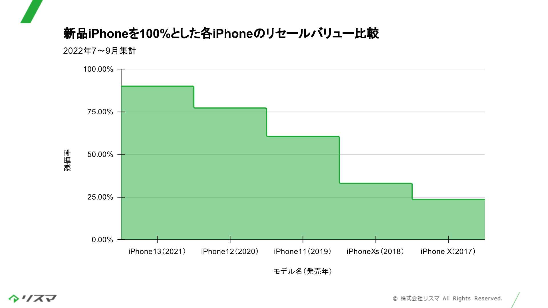 リユースショップにおける、iPhoneのリセールバリューを調査した結果は下記のとおりです。