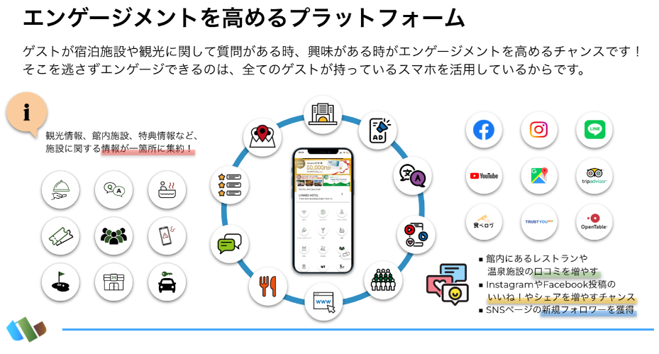 現状は、人手不足により宿泊客が満足する顧客対応ができず、宿泊客とのエンゲージメントの低下や売上機会の損失も大きなっております。またインバウンドの宿泊客への対応も懸念されております。宿泊施設は手数料の高いOTAからの依存脱却を目指し、自社サイトの強化は行っている一方で、旅中において今目の前にいる宿泊ゲストをリピーターにするためのエンゲージメント強化をするための施策ができている施設は多くはありません。