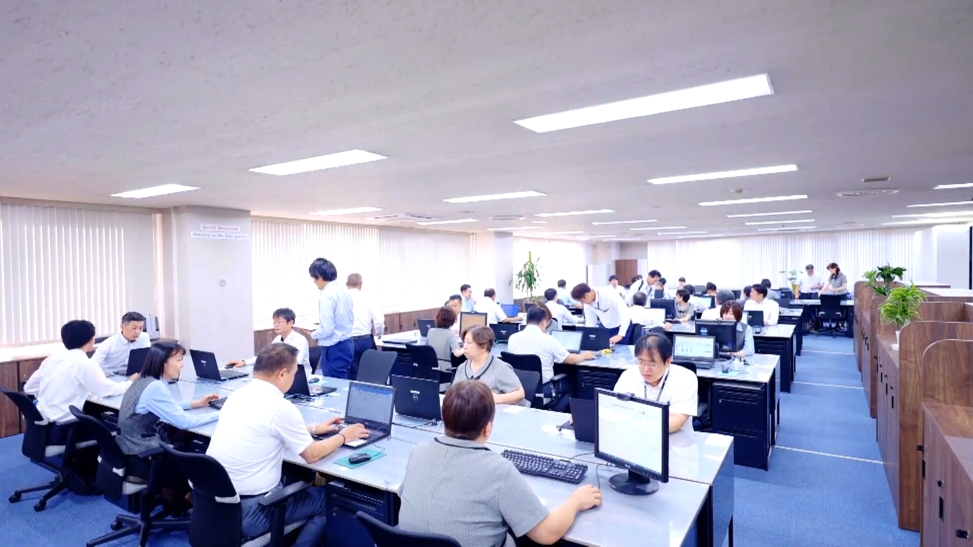 こちらは、橋本商会、グループ会社のオフィス・工場風景や従業員の普段の仕事の様子などを放映しております。