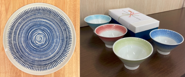 普段よりお世話になっているお取引様、OBOGの皆様、従業員の方々に贈呈する記念品として、蚊帳布巾、お皿、お茶碗を作成しました。