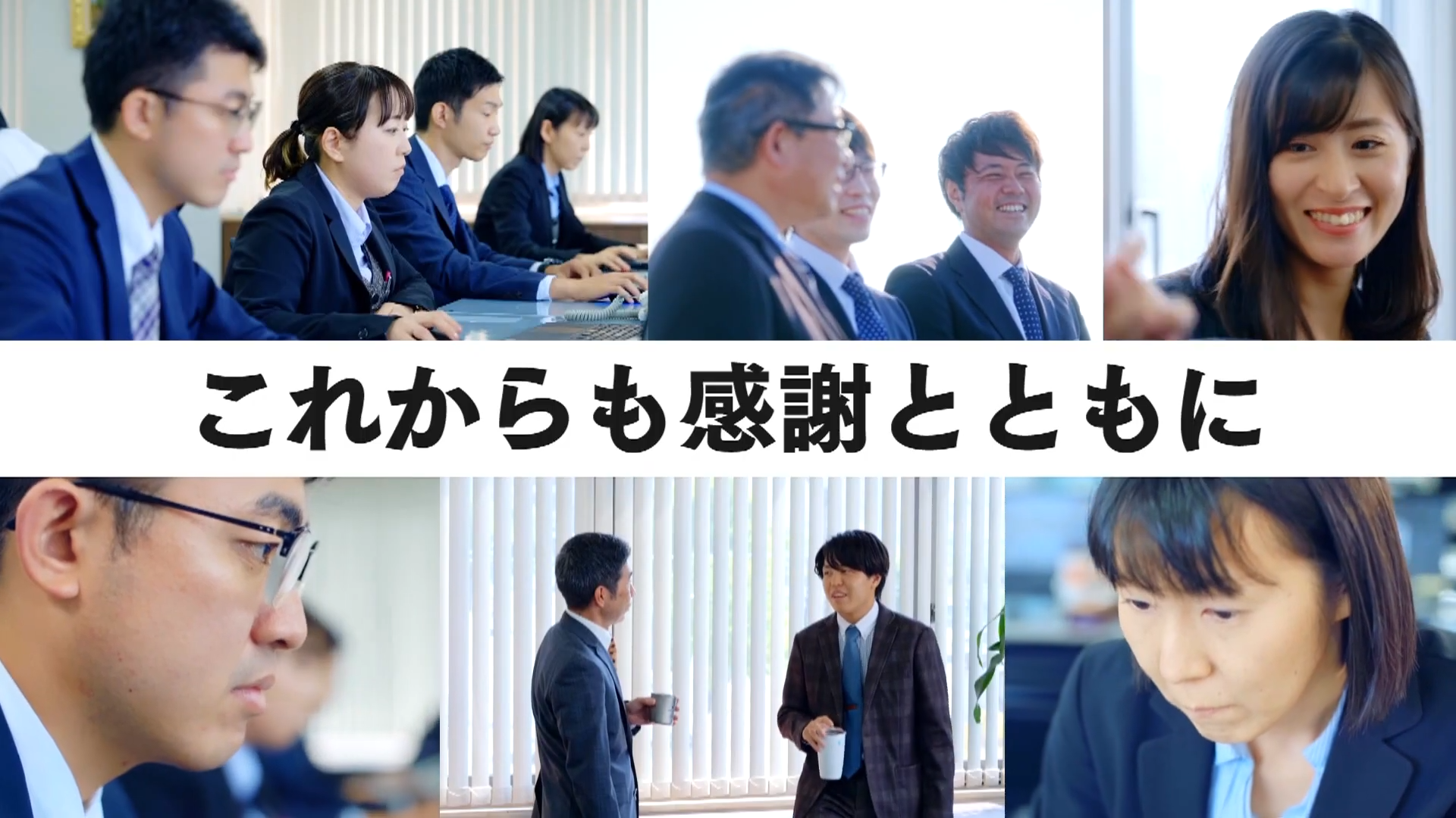 記念スローガンは、会社の気持ちを皆様にお伝えしようと従業員にスローガンを募集したところ、150近くの応募が集まり、その中からアンケートを取ったところ、「これからも感謝とともに」という作品に圧倒的な指示があったため、この言葉を周年記念のスローガンとして採用することとしました。