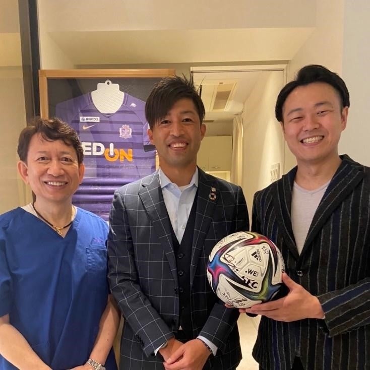 (左から柴田祐幸先生、サンフレッチェ広島C.R.M 森﨑和幸氏、当社 代表取締役CEO 梁燦久)
