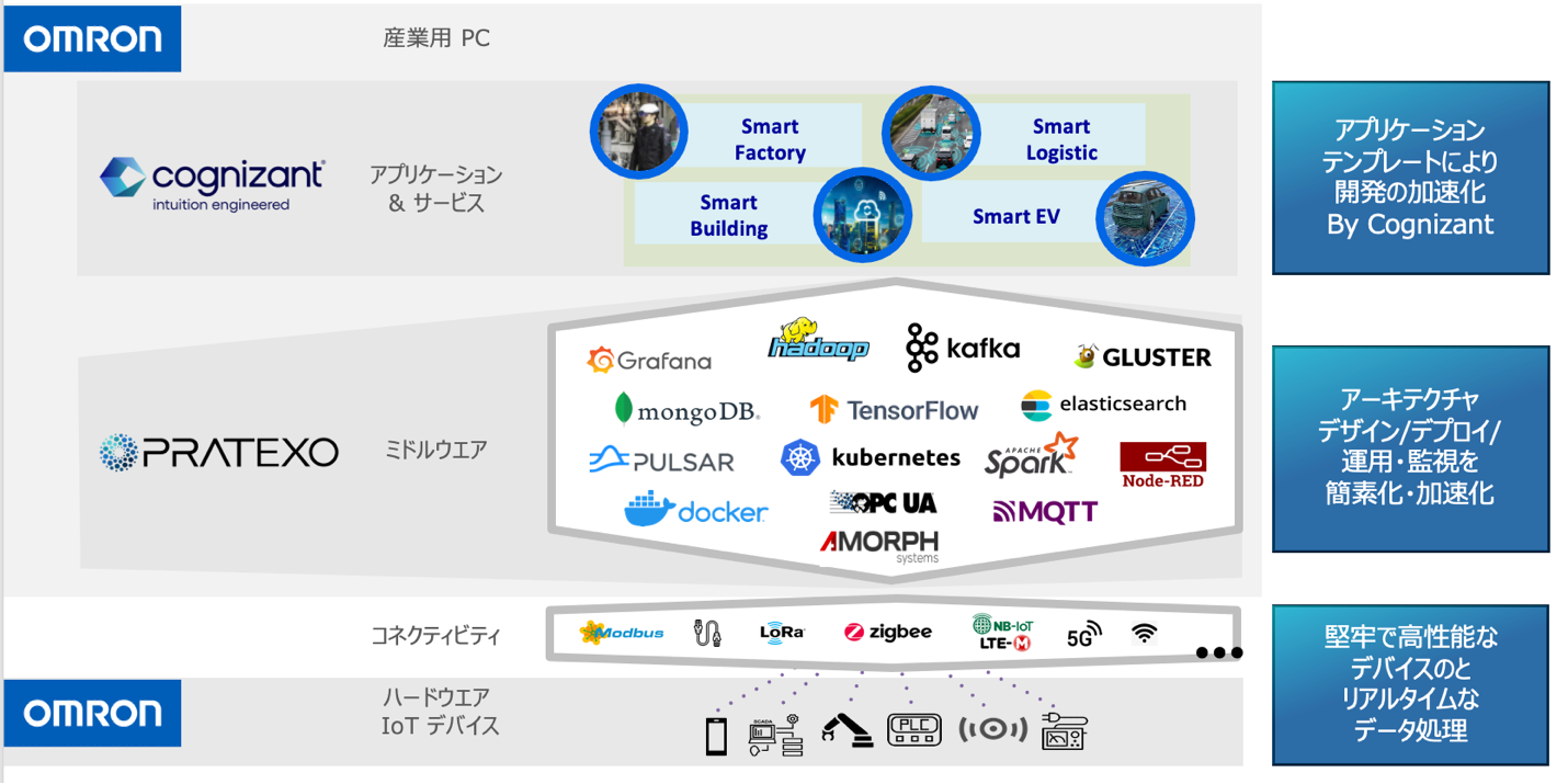 Pratexoは、オムロン株式会社(以下、「オムロン」)の産業用PC上でグローバルシステムインテグレーター&コンサルティングのコグニザントジャパン株式会社(以下、「コグニザント」)と共に、先進ソフトウエア・コンポーネントを組み込み、それらの技術および先進ソリューションの検証を行っております。