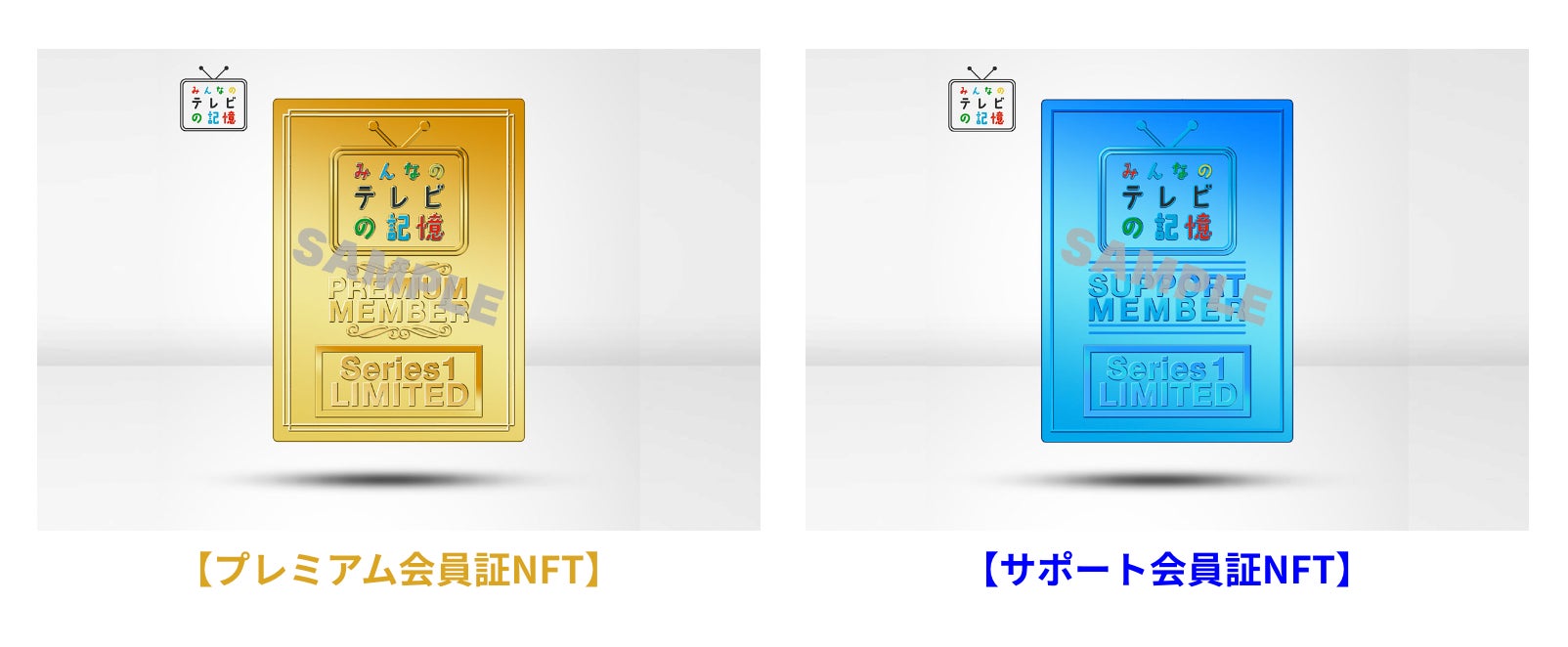 みんなのテレビの記憶ではこのプロジェクトに賛同してくれる方に向けたNFTの販売を開始しました。このNFTは「みんなのテレビの記憶<プレミアム会員権>」「みんなのテレビの記憶<サポート会員権>」に2種類を用意しました。現在構築中のプレミアム会員専用コミュニティやサポート会員専用コミュニティへのアクセスが可能となります。今後はオンラインイベントへの閲覧・参加も予定しています。また、ご希望の方にはサービスサイト上に会員権NFT保有者として名前を大きく掲載させていただきます。そしてこのNFTの売上などで、今現在ある1978年〜2020年の番組表の前の時代を作ったり深夜枠や昼、朝の枠も作りたいと思っています。