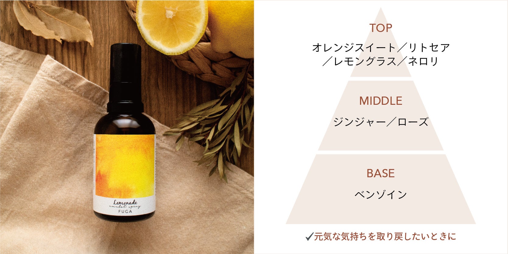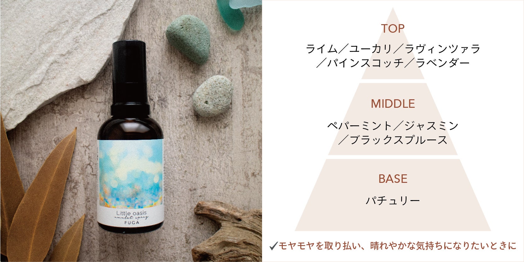 エタノール特有のスッとした香りをなくすことで、精油の香りをよりダイレクトに感じていただけます。