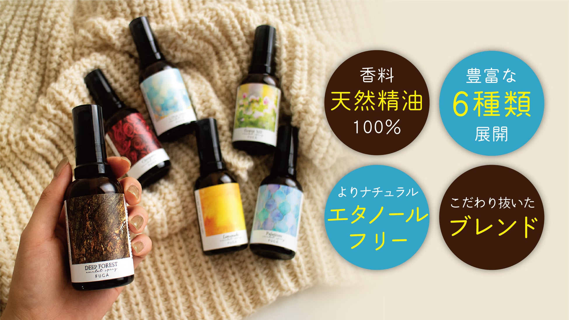 今回、アロマスプレーに欠かせないエタノールを一切使わない製法にリニューアルしました。