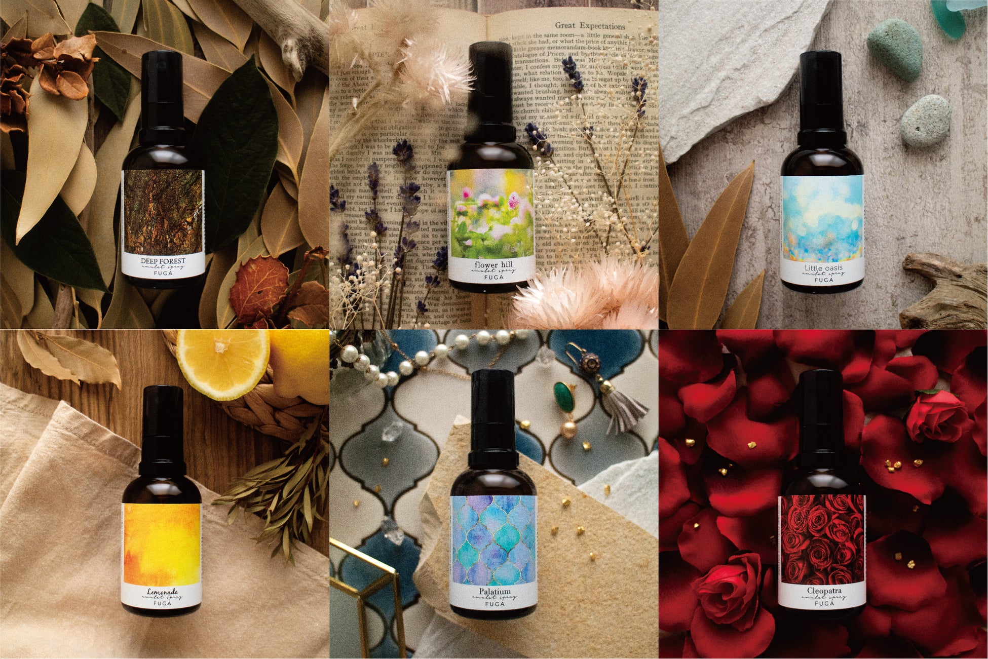 ・『目を閉じると別世界が広がる』をコンセプトに全6種の香り展開。こだわり抜いたブレンドでお好みの香りが見つかります。