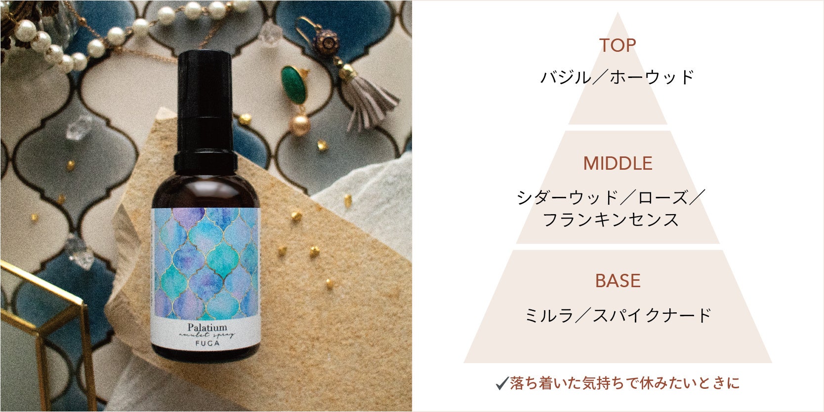 子供の頃から睡眠環境に悩みを抱えたアロマショップのオーナーが、同じ悩みを抱えた人や、仕事・家事育児など毎日忙しく働く人のために、"睡眠時間が心安らぐ時間になるように"と思いを込めて製作したピローミスト『night time amulet spray』。