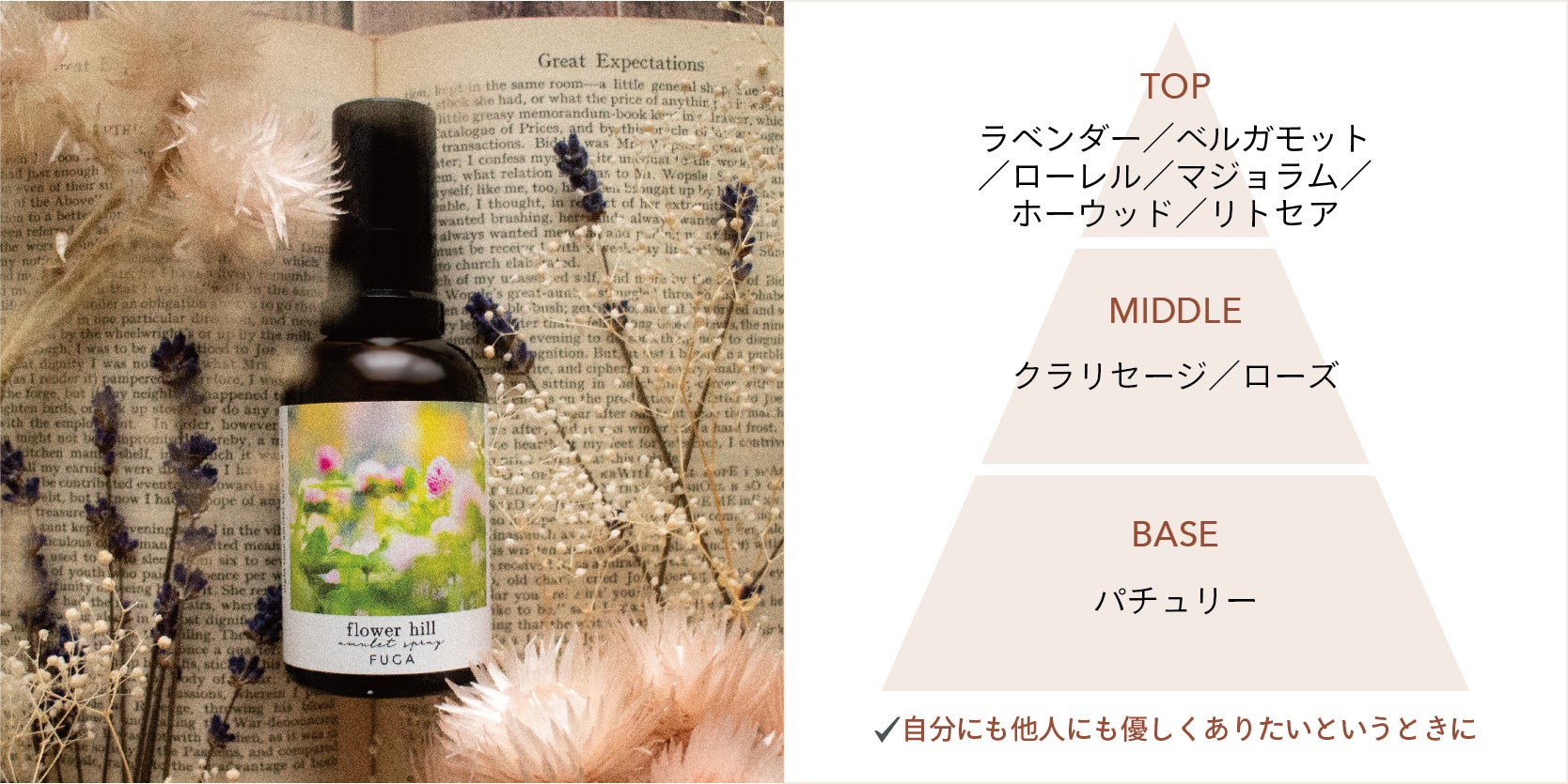 優しく繊細な香り立ちで、自然に揮発していきますので、強い香りが苦手な方にもおすすめです。