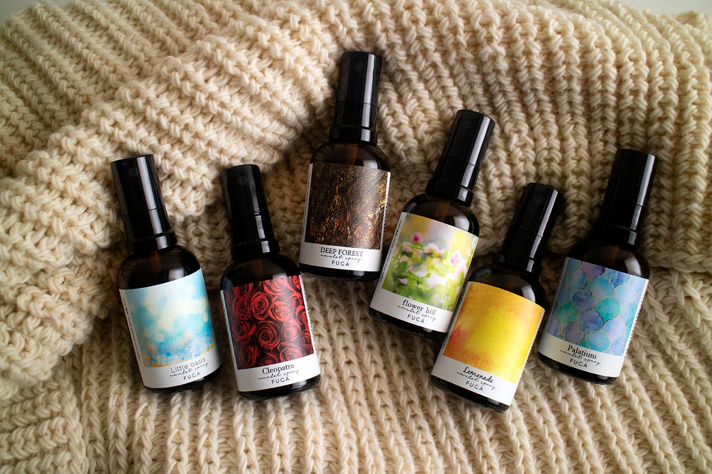睡眠時間が心安らぐ時間になるためには、ただ「良い香り」で終わるのではなく、目を閉じたとき、まるで別世界が広がるような香りにしたいと考え、6種ひとつひとつ、コンセプトとブレンドは徹底的にこだわり抜きました。